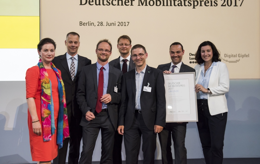 Mit dem Deutschen Mobilitätspreis machen die Initiative „Deutschland – Land der Ideen“ und das Bundesministerium für Verkehr und digitale Infrastruktur intelligente Mobilitätslösungen und digitale Innovationen öffentlich sichtbar. www.deutscher-mobilitätspreis.de